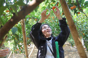一下車,滿山的砂糖橘果園浮現眼前,樹上掛著又大又圓的果子,一眼望去,數不清的砂糖橘像一個紅燈泡,閃亮迷人。撲鼻而來的青葉香令人心曠神怡,清新的空氣游走在身體每個角落。