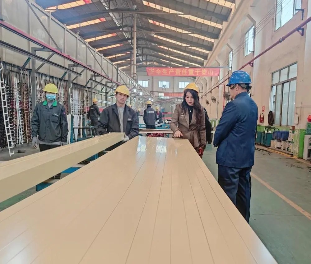 剛抵達(dá)高登,貴州省考察組領(lǐng)導(dǎo)一行不顧旅途勞累,在集團(tuán)總裁李婧帶領(lǐng)深入到高登廠區(qū)內(nèi)進(jìn)行實(shí)地考察。在高登各部門負(fù)責(zé)人的陪同下,分別參觀了生產(chǎn)車間、高登戶外系統(tǒng)產(chǎn)品、系統(tǒng)門窗展廳、鋁梯制造車間以及成品組裝車間等,深入了解高登的運(yùn)作模式與策略、廠房結(jié)構(gòu)、生產(chǎn)制造等方面情況,領(lǐng)導(dǎo)們對(duì)高登的規(guī)模及產(chǎn)品創(chuàng)新紛紛點(diǎn)贊,特別是對(duì)高登的企業(yè)文化及高登以鋁代木3·12森林保護(hù)日的倡議給予高度贊揚(yáng)。