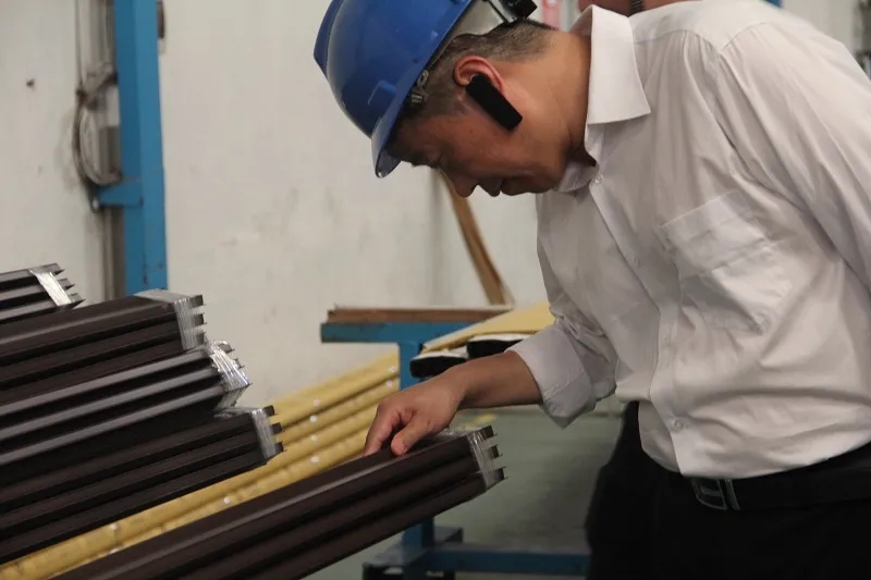 上午9點左右抵達廣州之后,黔西南州人民政府領導一行不顧舟車勞頓的疲憊,趕往高登總部進行實地考察。在廣東高登鋁業集團執行總裁李婧等高登領導層的陪同下,先后參觀了戶外系統產品、生產廠區、展廳、木紋生產工廠等高登車間及辦公區域進行詳細了解。
