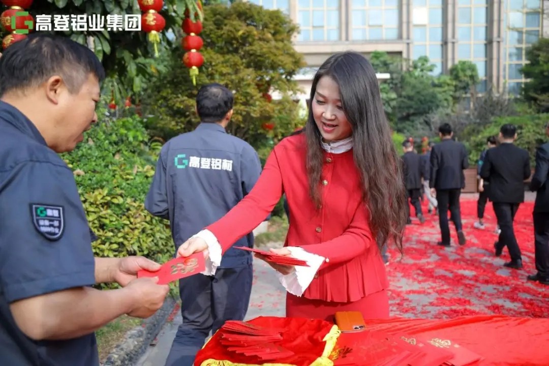 開門利是,是新一年 “紅火”的開始。俗話說:“ 好的開端,等于成功的一半。”開工最幸福的事就是排隊領利是;廣東高登鋁業集團董事長高力登先生、董事長夫人:陳肖群女士,總裁高振中先生、執行總裁李婧女士給小伙伴們派發開門利是,祝小伙伴們新的一年工作順利,在各自的崗位上干出屬于自己的天地!祝福小伙伴們在新的一年里,家庭美滿,工作愉快,績效顯著,獎金多多~