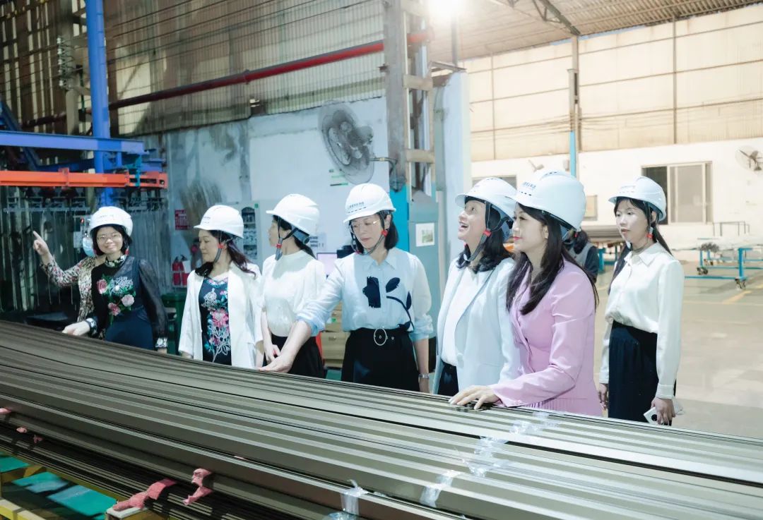 期間,調(diào)研組領(lǐng)導(dǎo)們參觀了該企業(yè)的生產(chǎn)經(jīng)營情況,在品類多樣的產(chǎn)品展示及強(qiáng)大的生產(chǎn)律動(dòng)中,張艷華主席震撼于鋁型材如此廣泛的應(yīng)用和藝術(shù)美感,充分肯定了高登在推動(dòng)巾幗企業(yè)轉(zhuǎn)型升級(jí)、通過創(chuàng)新推動(dòng)高質(zhì)量發(fā)展所作出的不懈努力。