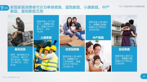相關機構主要根據消費者家庭收入以及其他相關因素對消費者人群進行了分類,提出五大人群類型:單身貴族、小康家庭、改善型家庭、中產家庭、富裕家庭。