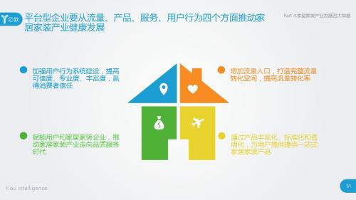 通過分析家居家裝產業現狀以及消費者特征,相關機構認為,未來幾年平臺型家居家裝企業更容易在競爭中勝出,但平臺型企業與垂直型企業不是競爭關系,而是魚水共存關系。家居家裝平臺型企業,可以從流量、產品、服務、用戶行為四個方面推動家居家裝產業健康發展。